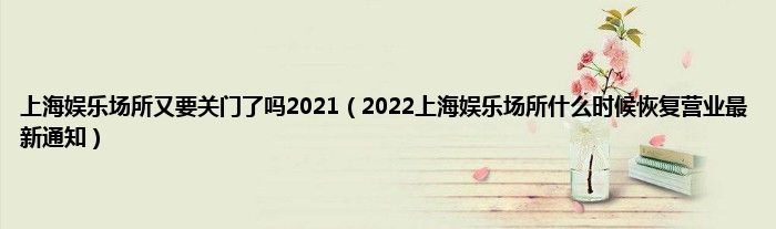 本文,上海娱乐场所又要关门了吗2021,2022上海娱乐场所什么时候恢复营业最新通知到此就分享完毕,希望对大家有所帮助。