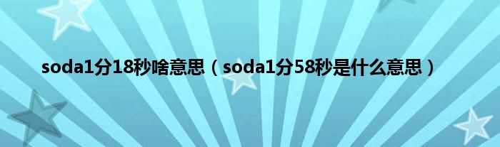 大家好,小问来为大家解答以上问题。soda1分18秒啥意思,soda1分58秒是什么意思这个很多人还不知道,现在让我们一起来看看吧!