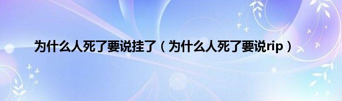 大家好,为什么人死了要说挂了,为什么人死了要说rip很多人还不知道,现在让我们一起来看看吧!