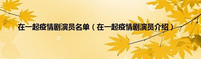 本文,在一起疫情剧演员名单,在一起疫情剧演员介绍到此就分享完毕,希望对大家有所帮助。
