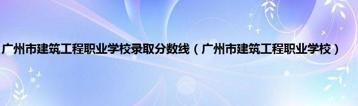 以上就是【广州市建筑工程职业学校录取分数线,广州市建筑工程职业学校】相关内容。