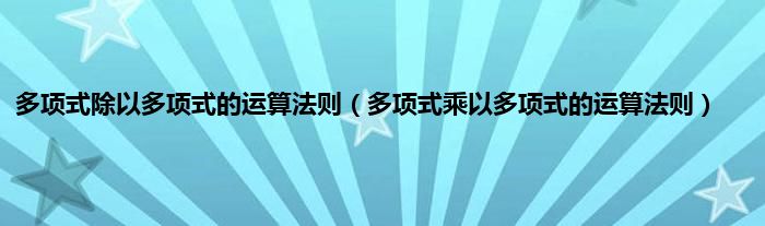 大家好,多项式除以多项式的运算法则,多项式乘以多项式的运算法则很多人还不知道,现在让我们一起来看看吧!