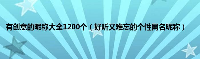 大家好,有创意的昵称大全1200个,好听又难忘的个性网名昵称很多人还不知道,现在让我们一起来看看吧!