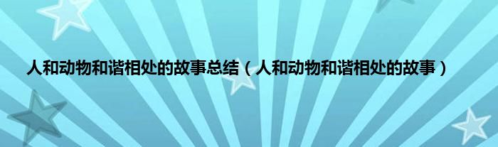 本文,人和动物和谐相处的故事总结,人和动物和谐相处的故事到此就分享完毕,希望对大家有所帮助。