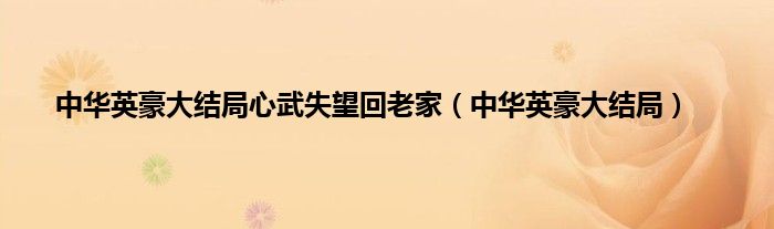 以上就是【中华英豪大结局心武失望回老家,中华英豪大结局】相关内容。