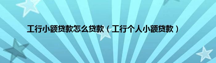 以上就是【工行小额贷款怎么贷款,工行个人小额贷款】相关内容。