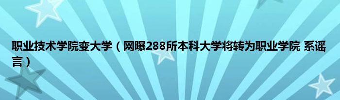 以上就是【职业技术学院变大学,网曝288所本科大学将转为职业学院 系谣言】相关内容。