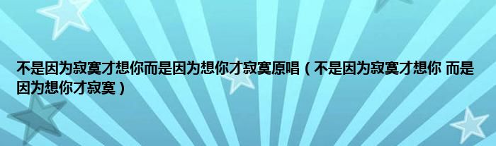 不是因为寂寞才想你而是因为想你才寂寞原唱(不是因为寂寞才想你 而是因为想你才寂寞)