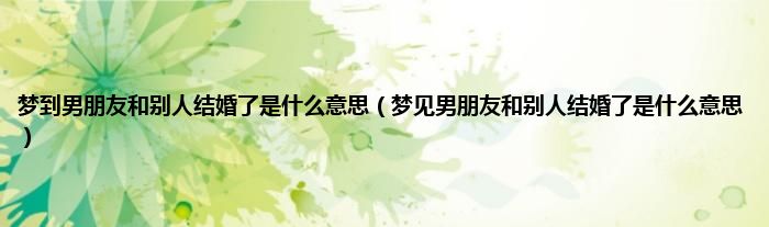 一、梦见男朋友和别人结婚了是什么意思: 梦见男朋友和别人结婚了,意味着最近会有很多烦恼。