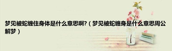 本文梦见被蛇缠住身体是什么意思啊?,梦见被蛇缠身是什么意思周公解梦到此分享完毕,希望对大家有所帮助。
