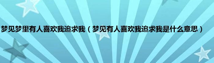 1、 梦见有人喜欢我追求我,吉兆,近期运势不错,身边将会有桃花运,参加一些户外活动,说不定将会找到一份满意的姻缘。