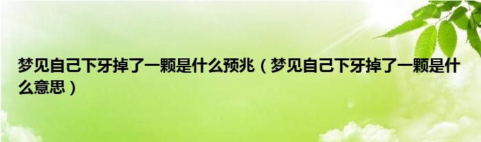 本文梦见自己下牙掉了一颗是什么预兆,梦见自己下牙掉了一颗是什么意思到此分享完毕,希望对大家有所帮助。