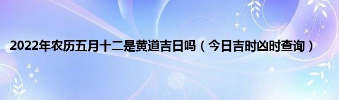 大家好,综合小编来为大家讲解下。2022年农历五月十二是黄道吉日吗,今日吉时凶时查询这个很多人还不知道,现在让我们一起来看看吧!