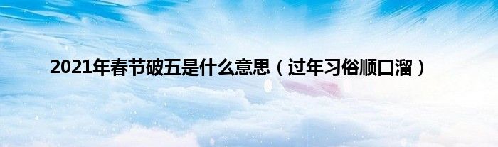 大家好,综合小编来为大家讲解下。2021年春节破五是什么意思,过年习俗顺口溜这个很多人还不知道,现在让我们一起来看看吧!