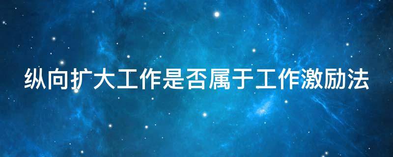 纵向扩大工作是属于工作激励法,工作激励是指通过合理设计与适当分配工作任务来激发员工内在的工作热情,所以纵向扩大工作是属于工作激励的性质。工作激励指导思想是使工作人员有获得成就的机会、晋升的机会和组织认同感及更富有责任感。它可以区分为横向激励与纵向激励。所谓横向激励是使工作人员执行同一水平的多样职能,以减少对工作的厌烦情绪并开阔其眼界,从而为纵向激励准备条件。所谓纵向激励是使工作人员有条件参预制定计划和担负一定的控制职能。