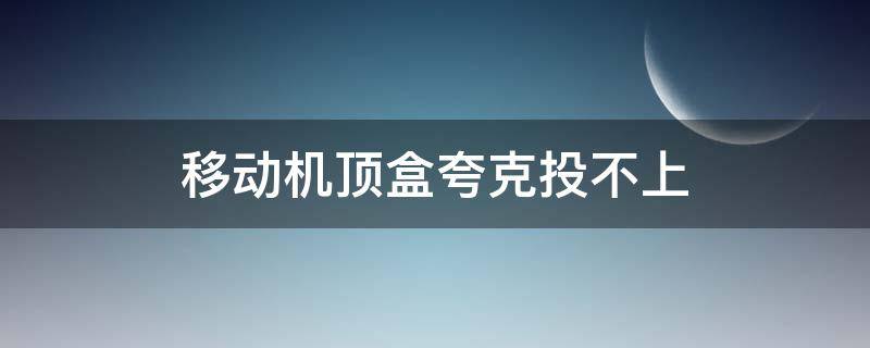 移动机顶盒夸克投不上是因为手机和电视没有处于同一网络下,建议检查网络。数字视频变换盒简称STB,通常称作机顶盒或机上盒,是一个连接电视机与外部信号源的设备。它可以将压缩的数字信号转成电视内容,并在电视机上显示出来。信号可以来自有线电缆、卫星天线、宽带网络以及地面广播。机顶盒接收的内容除了模拟电视可以提供的图像、声音之外,更在于能够接收数字内容,包括电子节目指南、因特网网页等。它使用户能在现有电视机上观看数字电视节目,并可通过网络进行交互式数字化娱乐、教育和商业化活动。