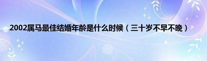 大家好,综合小编来为大家讲解下。2002属马最佳结婚年龄是什么时候,三十岁不早不晚这个很多人还不知道,现在让我们一起来看看吧!
