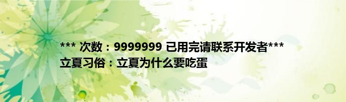 大家好,综合小编来为大家讲解下。*** 次数:9999999 已用完请联系开发者*** 立夏习俗:立夏为什么要吃蛋这个很多人还不知道,现在让我们一起来看看吧!
