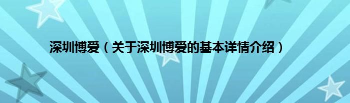 本文关于深圳博爱的基本详情介绍就讲解完毕,希望对大家有所帮助。