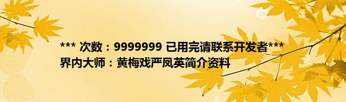 大家好,综合小编来为大家讲解下。*** 次数:9999999 已用完请联系开发者*** 界内大师:黄梅戏严凤英简介资料这个很多人还不知道,现在让我们一起来看看吧!