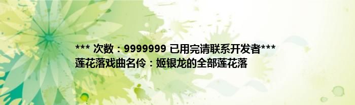 大家好,综合小编来为大家讲解下。*** 次数:9999999 已用完请联系开发者*** 莲花落戏曲名伶:姬银龙的全部莲花落这个很多人还不知道,现在让我们一起来看看吧!