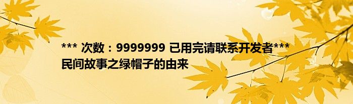 大家好,综合小编来为大家讲解下。*** 次数:9999999 已用完请联系开发者*** 民间故事之绿帽子的由来这个很多人还不知道,现在让我们一起来看看吧!