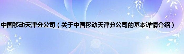 本文关于中国移动天津分公司的基本详情介绍就讲解完毕,希望对大家有所帮助。