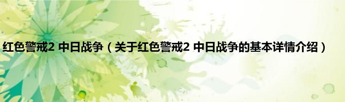 本文关于红色警戒2 中日战争的基本详情介绍就讲解完毕,希望对大家有所帮助。