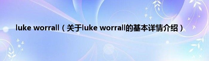 本文关于luke worrall的基本详情介绍就讲解完毕,希望对大家有所帮助。