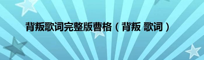 大家好,小问来为大家解答以上问题。背叛歌词完整版曹格,背叛 歌词这个很多人还不知道,现在让我们一起来看看吧!