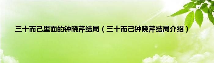 欢迎观看本篇文章,小升来为大家解答以上问题。三十而已里面的钟晓芹结局,三十而已钟晓芹结局介绍很多人还不知道,现在让我们一起来看看吧!