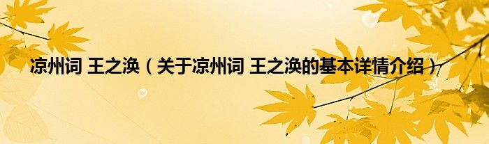 本文关于凉州词 王之涣的基本详情介绍就讲解完毕,希望对大家有所帮助。