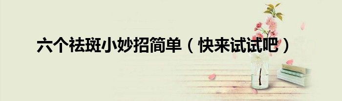 欢迎观看本篇文章,小升来为大家解答以上问题。六个祛斑小妙招简单,快来试试吧很多人还不知道,现在让我们一起来看看吧!
