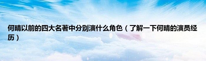 欢迎观看本篇文章,小升来为大家解答以上问题。何晴以前的四大名著中分别演什么角色,了解一下何晴的演员经历很多人还不知道,现在让我们一起来看看吧!