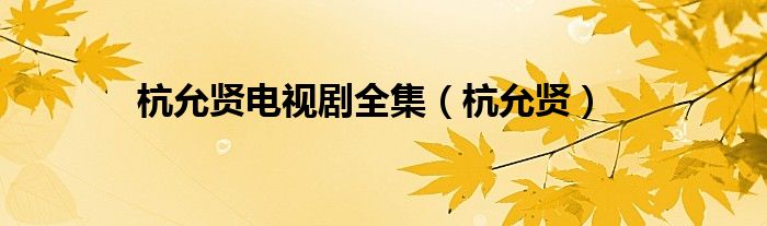 杭允贤电视剧全集(杭允贤)