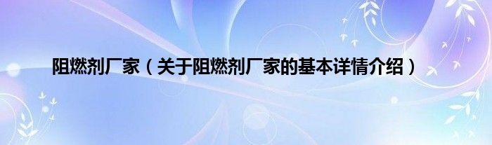 本文关于阻燃剂厂家的基本详情介绍就讲解完毕,希望对大家有所帮助。