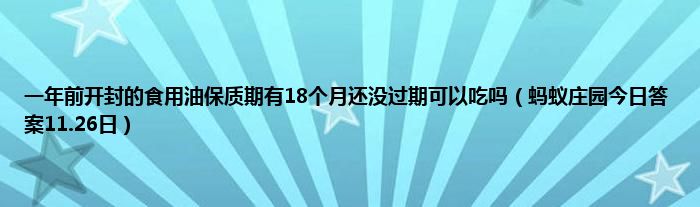 大家好,综合小编来为大家讲解下一年前开封的食用油保质期有18个月还没过期可以吃吗,蚂蚁庄园今日答案11.26日这个很多人还不知道,现在让我们一起来看看吧!
