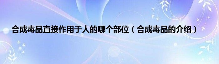 欢迎观看本篇文章,小升来为大家解答以上问题。合成毒品直接作用于人的哪个部位,合成毒品的介绍很多人还不知道,现在让我们一起来看看吧!