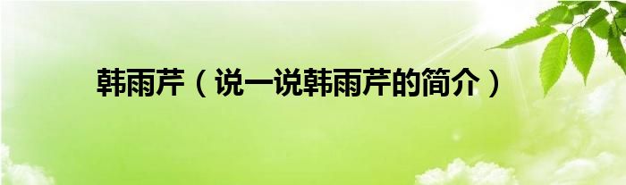 夏弥来为大家解答以下的问题,韩雨芹,说一说韩雨芹的简介,现在让我们一起来看看吧!