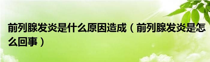 大家好,乐天来为大家解答以下的问题,前列腺发炎是什么原因造成,前列腺发炎是怎么回事很多人还不知道,现在让我们一起来看看吧!