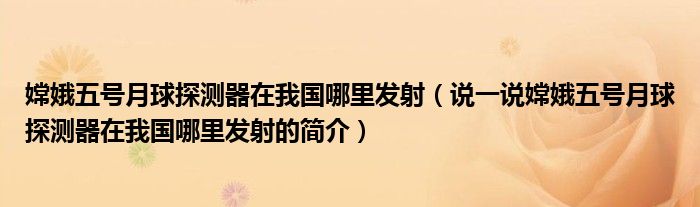 夏弥来为大家解答以下的问题,嫦娥五号月球探测器在我国哪里发射,说一说嫦娥五号月球探测器在我国哪里发射的简介,现在让我们一起来看看吧!