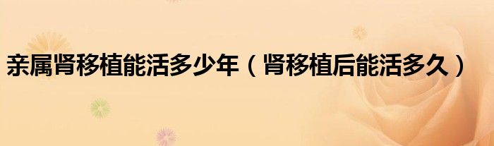 大家好,乐天来为大家解答以下的问题,亲属肾移植能活多少年,肾移植后能活多久很多人还不知道,现在让我们一起来看看吧!