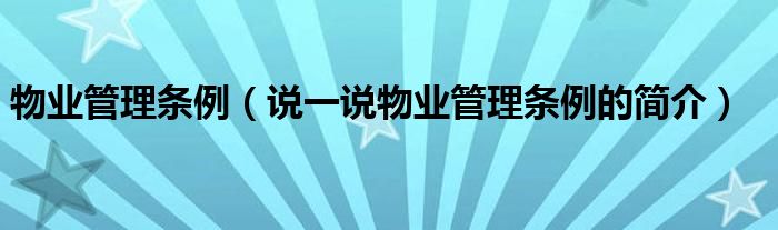夏弥来为大家解答以下的问题,物业管理条例,说一说物业管理条例的简介,现在让我们一起来看看吧!