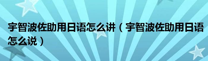 宇智波佐助用日语怎么讲(宇智波佐助用日语怎么说)