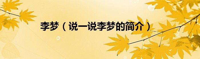 夏弥来为大家解答以下的问题,李梦,说一说李梦的简介,现在让我们一起来看看吧!