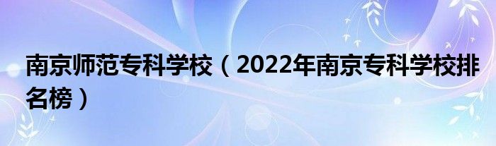 大家好,乐儿来为大家解答以下问题,南京师范专科学校,2022年南京专科学校排名榜很多人还不知道,现在让我们一起来看看吧!
