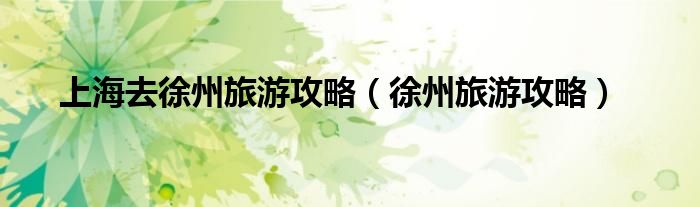 上海去徐州旅游攻略(徐州旅游攻略)