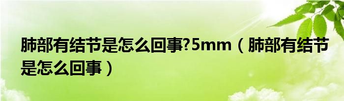 大家好,乐天来为大家解答以下的问题,肺部有结节是怎么回事?5mm,肺部有结节是怎么回事很多人还不知道,现在让我们一起来看看吧!