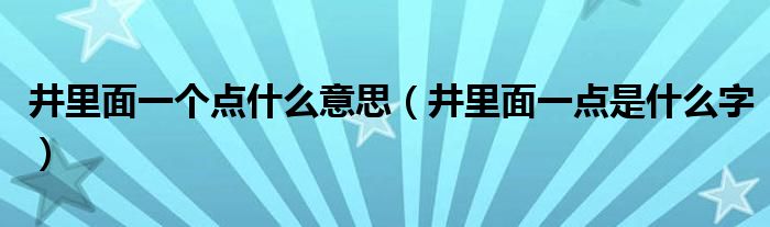 井里面一个点什么意思(井里面一点是什么字)