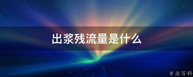 出浆残流量是指在工业生产中,液体或气体通过管道或管线输送后,仍然保持在管道中未能完全排出的残余物质的数量或体积。出浆残流量通常是作为管道液体或气体输送质量的一个重要指标,特别是在流体处理和工艺控制领域。出浆残流量的大小可能受到多种因素的影响,包括管道的设计、材料、尺寸、流速、流量变化、流体性质等。